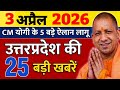 3 April 2026|up 25 Badi khabren mukhya samachar,CM Yogi ka Bada Elan, Uttar Pradesh mukhya samachar