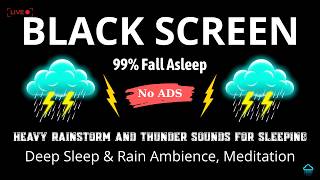 🔴Heavy Rain and Thunder Sounds for Sleeping - Black Screen No Ads | Natural Rain for Deep Relaxation