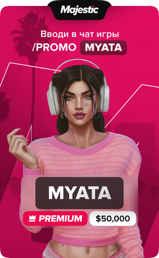 Давай играть вместе со мной на Majestic RP, скорее жми на картинку! Я играю на сервере Boston, а использовав мой промокод Myata, старт на проекте станет гораздо проще, благодаря множеству игровых плюшек!