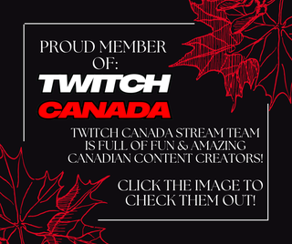 I have been accepted into the Twitch Canada stream team This one of a kind team is a bunch of my fellow Canadian content creators!! Please go check them out as well by clicking on the image above!!