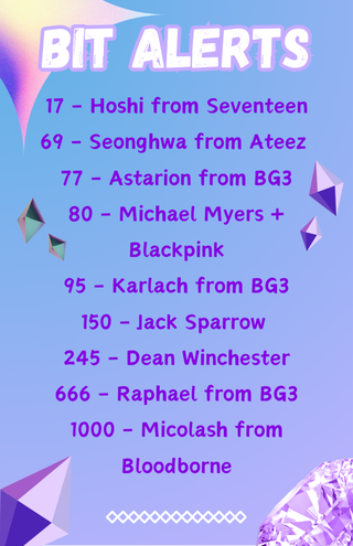 Tier 3 -Same as Tier 1 -2x channel points multiplier for watching streams -Your own command with a gif and a sound of your choice to use on streams (TOS friendly) -Special role on Discord -Extra emote -Your nickname on separate panel in my 'About' section on Twitch -My never ending love for you!