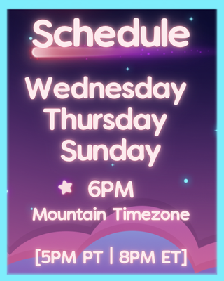 ○ No age talk (This is an 18+ chat.) ○ No links (This is just to keep chat safe.) ○ No self-promo (Twitch Etiquette 101, baby.) ○ No trauma dumping (Keep it light, I'm not your therapist.) ○ English only (We need to be able to moderate chat.)