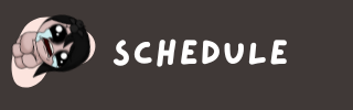 PS : Je ne suis quasiment jamais en retard, si c'est le cas, c'est annoncé sur discord. PS2 : Le programme du weekend peut changer de semaine en semaine, des streams le samedi sont donc possibles tout comme des vendredis et dimanches off, un jour off peut même tomber en semaine et des semaines peuvent n'avoir aucun jour off. Ce sera annoncé à l'avance, au plus tard la veille, dans tous les cas. PS3 : Des streams plus long, légèrement plus court ou plus tôt sont possibles.