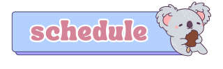 ♡ Monday = 11am ♡ Tuesday= 11am ♡ Wednesday= 11am ♡ Thursday = 11am ♡ Friday = 11am ♡ Saturday = Ø ♡ Sunday = Ø but occasional stream!