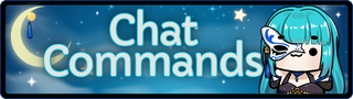 Commands that can be used in chat. ・・・・☆・・・・☆・・・・☆・・・・ ⋆ !join ⋆ !discord ⋆ !fish (fishing mini game) ⋆ !slots (100 min. or points amount) ⋆ !duel (username after command, point amount) ⋆ !points ⋆ !givepoints ⋆ !pudding (info on AI pet) ⋆ !raid (raid message) ⋆ !socials ⋆ !throne ⋆ !toot ・・・・☆・・・・☆・・・・☆・・・・ Bits : ⋆ 50 - throws many items at me ⋆ 100 - activates tts ⋆ 200 - Wheel Spin