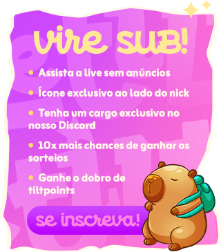 Aqui na Twitch, eu faço lives de segunda a sexta, a tarde. Sempre jogando e trocando ideia com o chat.