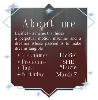 Люцифиэль — имя, за которым скрывается вечный двигатель и выдумщик, чья страсть - делать мечты осязаемыми. Никнейм: Люцифиэль короткая форма Люци. Я девушка. День рождения: 7 Марта