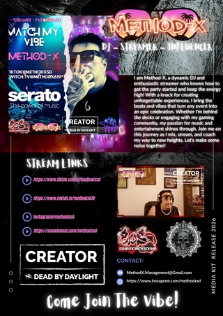 I am Method-X, a dynamic DJ and enthusiastic streamer who knows how to get the party started and keep the energy high! With a knack for creating unforgettable experiences, I bring the beats and vibes that turn any event into an epic celebration. Whether I'm behind the decks or engaging with my gaming community, my passion for music and entertainment shines through. Join me on this journey as I mix, stream, and coach my way to new heights. Let's make some noise together!