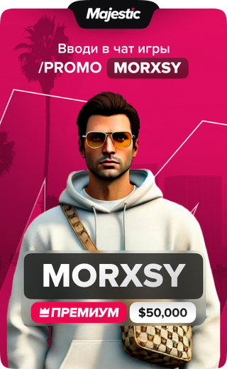 🎮 Играю на проекте MAJESTIC RP 🎁 Промокод: MORXSY 📲 Активация: 🎈В чат в игре 🎈 /promo morxsy 😈 Мы ждем всю братву!!! ДАЮ ОТ СЕБЯ 100К ЗА ВВОД ПРОМО