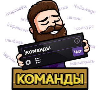 !followage - узнать сколько вы подписаны на канал. !вилли !гарнизон - узнать о реалиях гарнизона в БФА. !торговец - узнать какой торговец сегодня в гарнизоне. !любовь к -Генератор любви KappaPride !челендж- что нужно для участия в челендже !конкурс - если в данный момент проходит конкурс-даст ссылку на условия. !vk - паблик вк! !анонс - оповещение о стримах. !youtube - ссылка на ютуб !кемиграть !ктососед !заорду !заальянс !снежок "ник" !шарик