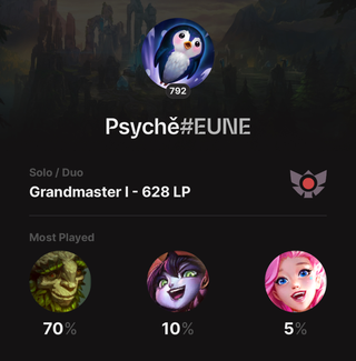 years old and currently living in Romania. I'm a psychology grad and right now i m in a master's program Clinical Psychology I've been playing league of legends since season 4 and my peak was grandmaster in s9 as a support main.( Ign:Psychě, EUNE) My biggest passion is psychology but also video games.