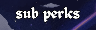 in no way required to sub but the perks are: ✓ ad free viewing ✓ cute spiderweb badge next to ur name (made by @notsvenftw) ✓ able to use all my sick ass custom emotes (made by @subbibara & @SnomOnABench) ✓ access to sub only channel in my discord server ✓ i can feed the cats their fav wet food