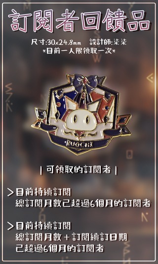 可領取的訂閱者: ⭐目前持續訂閱,總訂閱月數已超過6個月的訂閱者 ⭐目前持續訂閱,總訂閱月數+訂閱續訂日期已超過6個月的訂閱者