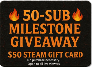 🎯 How It Works: Once the Scorched Aces channel reaches 50 total subscribers, a $50 Steam Gift Card giveaway will be unlocked for the entire community. Entry will take place live on stream. Anyone present in chat at the time of the giveaway can enter for free when the entry keyword is announced. One winner will be selected at random using an automated, verifiable chat-bot draw (such as StreamElements or Nightbot).