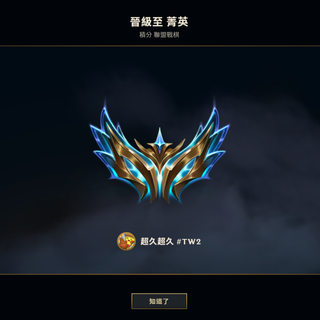 •S6剛接觸 大師 •中間退坑忙別的事 •S10回鍋 宗師 •S11 宗師 •S12 菁英 •S13 菁英 •S14 菁英 •S15 菁英 •S16 菁英