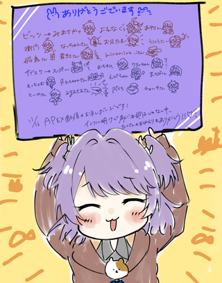 twitter(@310_ramune)さん twitch(https://www.twitch.tv/310ramune) 佐藤らむねさんのイラスト企画配信にて描いていただきました! 画像を押すとご本人のTwitterが開きます! ご本人様のことが気になったら TwitterやTwitchを観に行ってみてください! 明るく楽しんでゲームプレイをしていて、おっちょこちょいやらかした時のリアクションが面白いかわいい方です!絶対推しになる! 迷惑行為は絶対にしないでね。