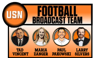 PAUL PAKOWSKI - The former NFL offensive lineman is our secondary sideline reporter. A journeyman if there ever was one, Paul speaks from a place of experience. He knows the pros, because he was a pro, and now it's his job to let you know what it's like for the pros. His meaty paws can barely grasp a microphone, but that won't slow down his pursuit to soak up every last piece of information.
