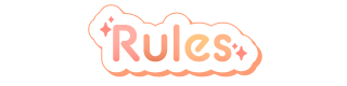 × 行動やゲーム内に関しての指示 × 他のリスナーさんの迷惑になる行為 × 私個人の特定につながるような質問 × リスナーさん同士での過度な会話 × セクハラコメ × 自分語り × リスナーさん同士での会話 × 他の配信者さんの名前を出す × 落ちコメ × 参加型の参加者へのフレンド申請