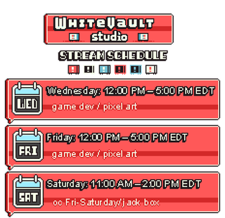 Wednesday: 12:00 PM – 5:00 PM EDT (Game Dev and Pixel Art)